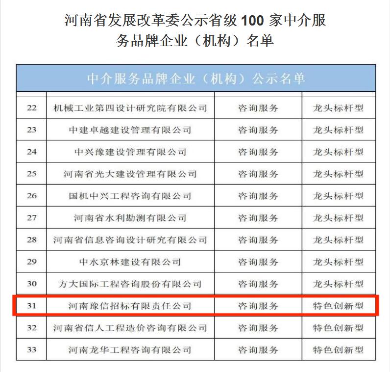 河南省發(fā)展改革委公示省級100家中介服務(wù)品牌企業(yè)(機(jī)構(gòu))名單