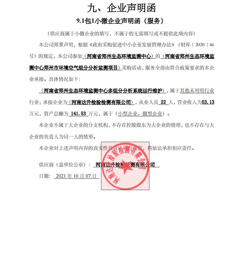 豫政采(2)20211585-1 | 河南省鄭州生態(tài)環(huán)境監(jiān)測中心鄭州市環(huán)境空氣組分分析監(jiān)測項目包1 | 河南達(dá)升檢驗檢測有限公司 | 鄭州市金水區(qū)青年路145號6號樓9層904號 | 2379000 | 金額 | 元 | |||||