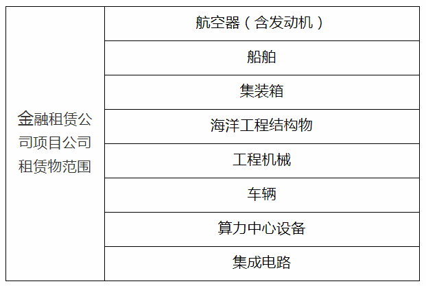 金融租賃公司項(xiàng)目公司業(yè)務(wù)正面清單