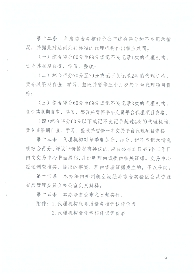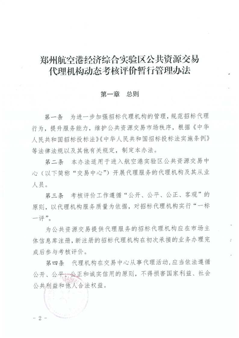 鄭州航空港經(jīng)濟(jì)綜合實(shí)驗(yàn)區(qū)公共資源交易代理機(jī)構(gòu)動(dòng)態(tài)考核評(píng)價(jià)暫行管理辦法
