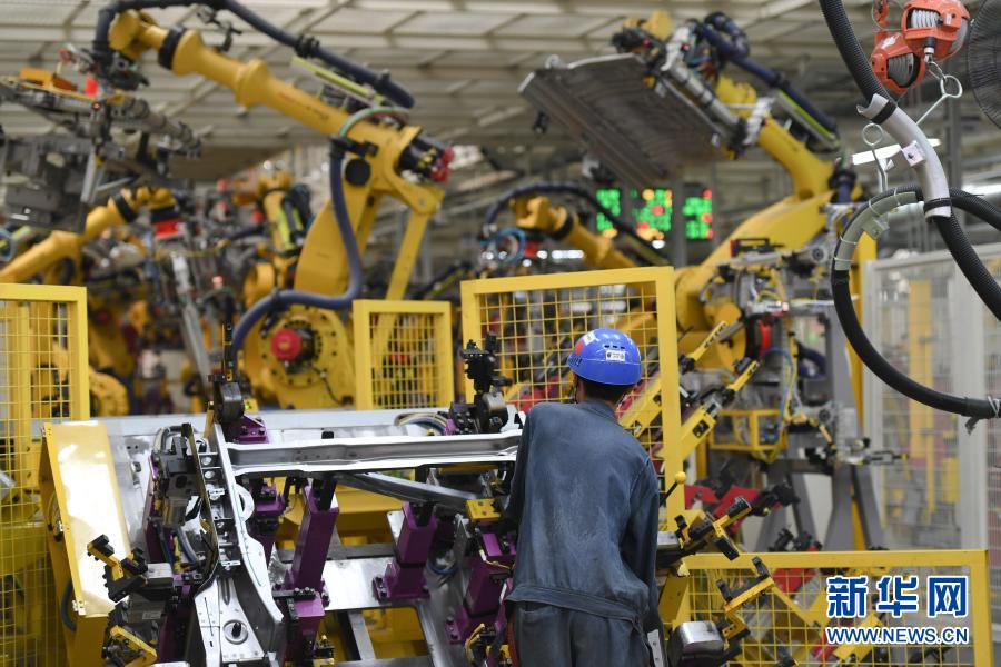 9月15日,在上汽集團(tuán)乘用車(chē)寧德基地車(chē)身車(chē)間,工人操作機(jī)器人分拼汽車(chē)板材。新華社記者 宋為偉 攝
