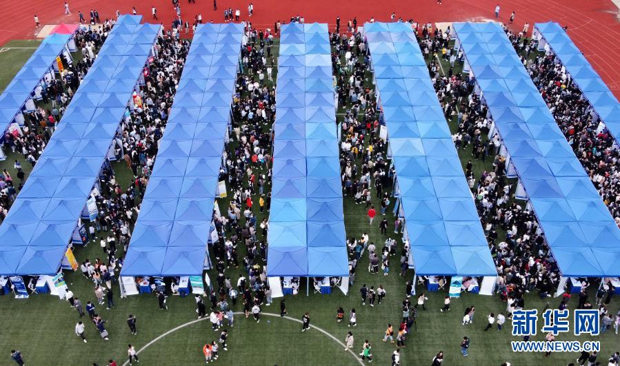 這是10月28日拍攝的上海市2021屆高校畢業(yè)生秋季校園招聘會(huì)現(xiàn)場(chǎng)(無(wú)人機(jī)照片)。新華社記者 劉穎 攝
