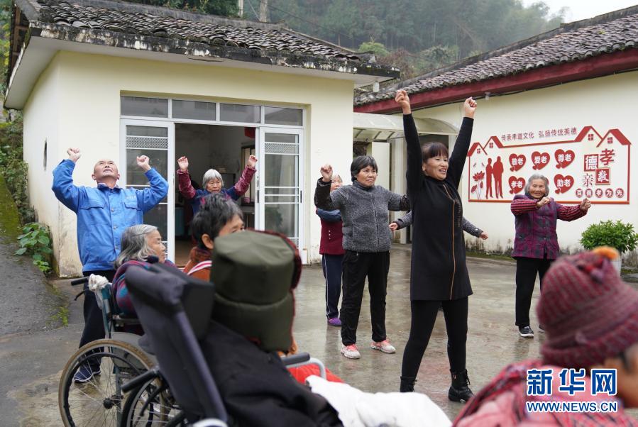 12月4日,在江西省撫州市黎川縣德勝鎮(zhèn)德勝村“幸福之家”養(yǎng)老服務(wù)站,工作人員帶領(lǐng)居民一起做操鍛煉身體。新華社記者 胡晨歡 攝