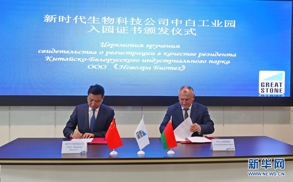 3月18日,在白俄羅斯首都明斯克郊區(qū)的中白工業(yè)園,工業(yè)園與入駐項(xiàng)目代表簽署入園協(xié)議。新華社發(fā)(任科夫攝)