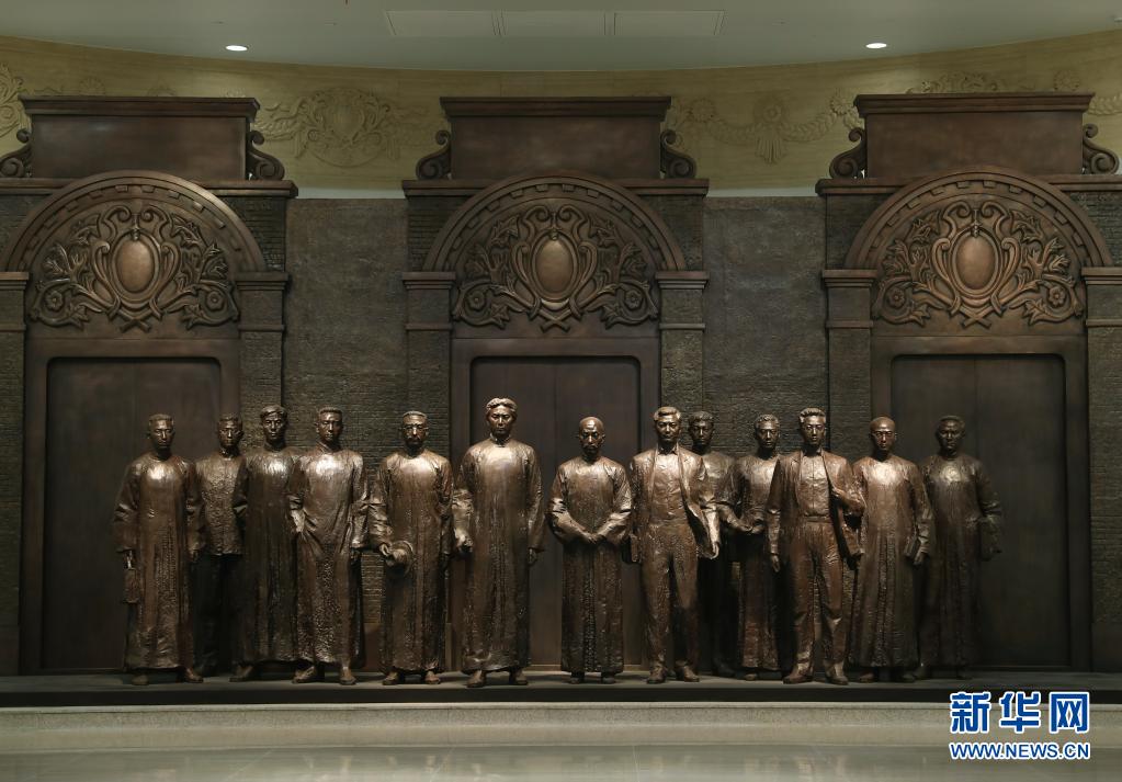 6月1日拍攝的中共一大紀(jì)念館內(nèi)的一大代表群體銅像。新華社記者 劉穎 攝