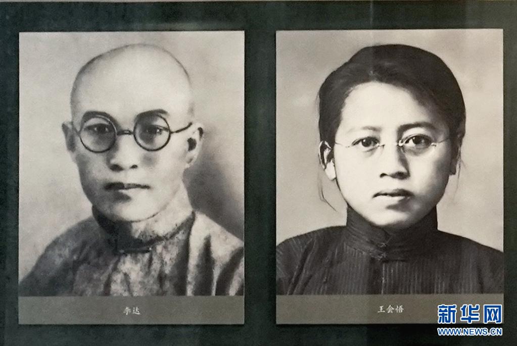中共二大會址紀(jì)念館展示的李達(dá)、王會悟夫婦的照片。新華社發(fā)