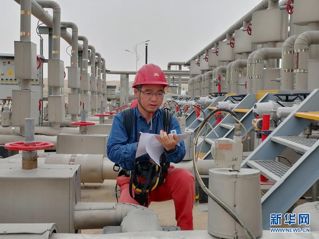 7月31日,馮光在塔里木油田塔中1號(hào)集氣站核對(duì)遠(yuǎn)傳工藝參數(shù)。新華社發(fā)
