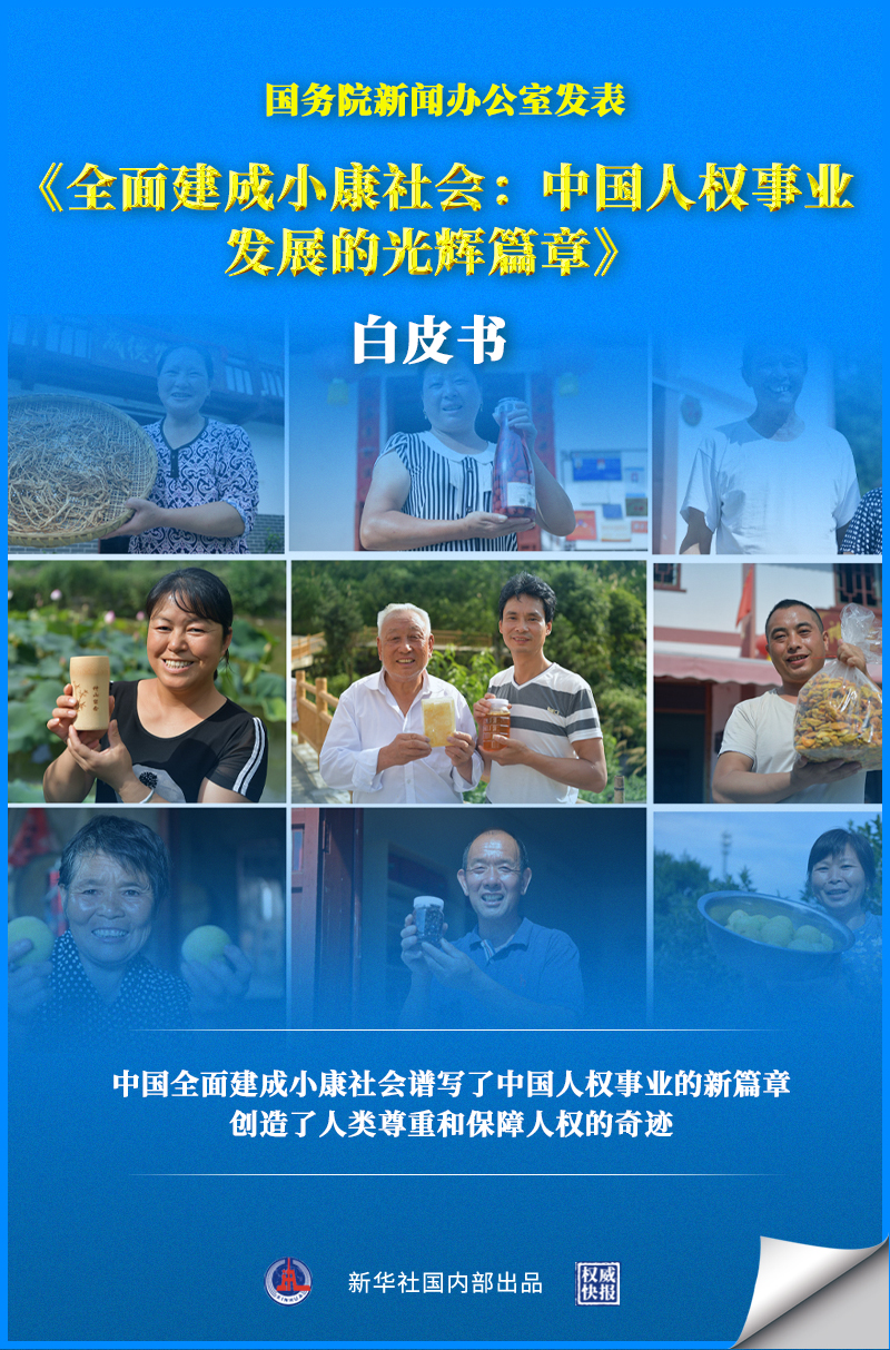 新華社北京8月12日電 國務(wù)院新聞辦公室12日發(fā)表《全面建成小康社會:中國人權(quán)事業(yè)發(fā)展的光輝篇章》白皮書。