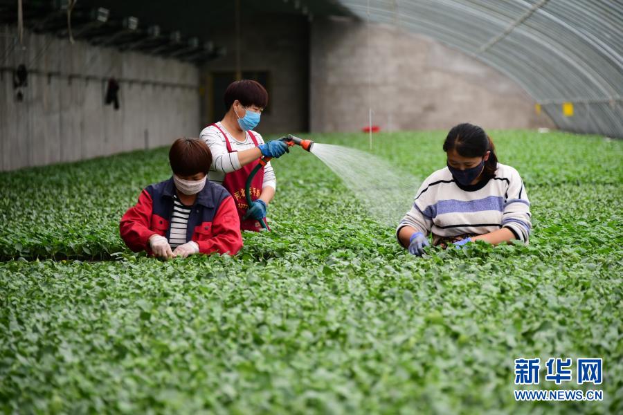 河北曲周縣一家育苗產(chǎn)業(yè)基地的工人在育苗溫棚內(nèi)工作(5月4日攝)。曲周縣積極拓寬產(chǎn)業(yè)扶貧渠道,發(fā)揮當(dāng)?shù)禺a(chǎn)業(yè)優(yōu)勢,統(tǒng)籌協(xié)調(diào)貧困戶利用扶貧資金入股現(xiàn)代設(shè)施農(nóng)業(yè)基地,帶動(dòng)群眾脫貧增收。新華社記者 朱旭東 攝