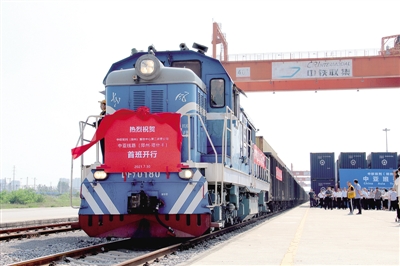 ?? 7月30日,一趟滿載貨物的班列從鄭州圃田站發(fā)車。這是“7·20”暴雨后,繼7月25日鄭歐班列恢復(fù)發(fā)車后的首趟中亞班列。 鄭報全媒體記者 王賽華 圖