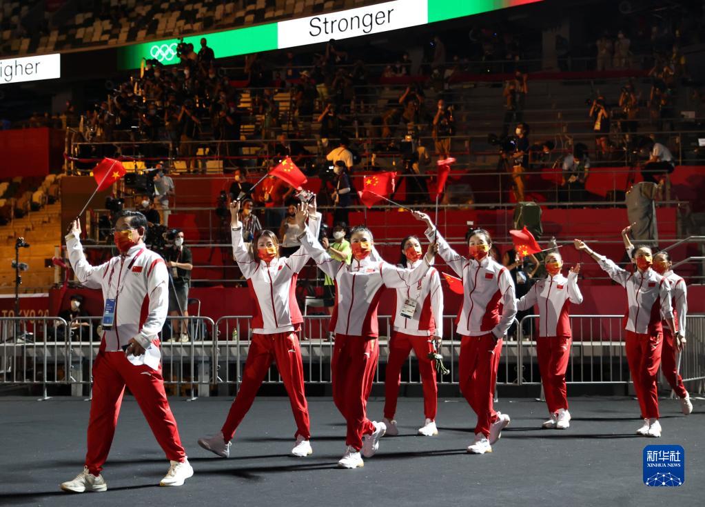 8月8日,第32屆夏季奧林匹克運動會閉幕式在日本東京舉行。這是中國體育代表團成員進入體育場。新華社記者 曹燦 攝