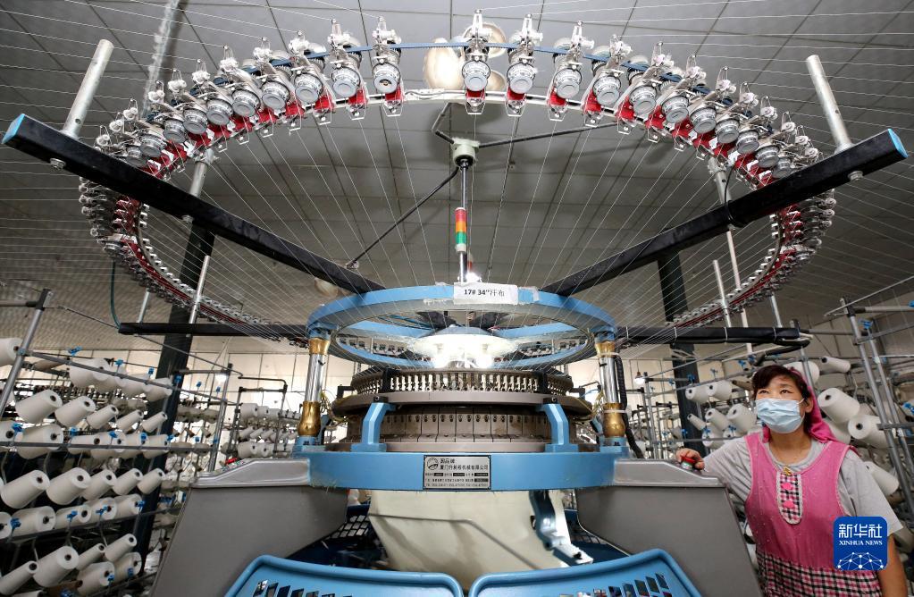8月22日,在山東省棗莊市稅郭鎮(zhèn)的一家紡織企業(yè),工人在生產(chǎn)純棉布。稅郭鎮(zhèn)生產(chǎn)的紡織服裝產(chǎn)品出口到美國(guó)、德國(guó)、法國(guó)、日本、韓國(guó)等38個(gè)國(guó)家和地區(qū)。新華社發(fā)(孫中喆 攝)
