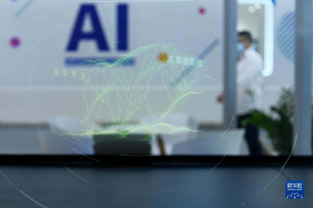 7月8日在2021世界人工智能大會(huì)上拍攝的密苑云頂樂(lè)園三維全息投影圖。新華社發(fā)(胡智軒 攝)