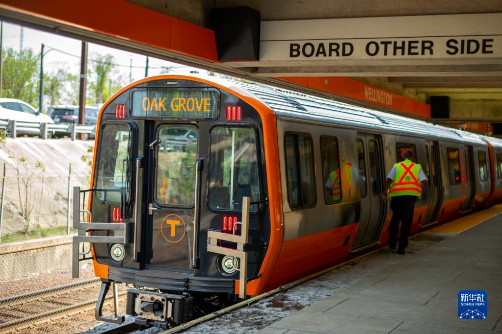 這是2018年5月15日在美國(guó)馬薩諸塞州梅德福德惠靈頓站拍攝的中車長(zhǎng)客為波士頓橙線地鐵“量身訂制”的首批車輛。這批地鐵列車整車具有完全自主知識(shí)產(chǎn)權(quán),是中國(guó)首批依照美國(guó)標(biāo)準(zhǔn)生產(chǎn)的地鐵車輛。新華社記者 李木子 攝