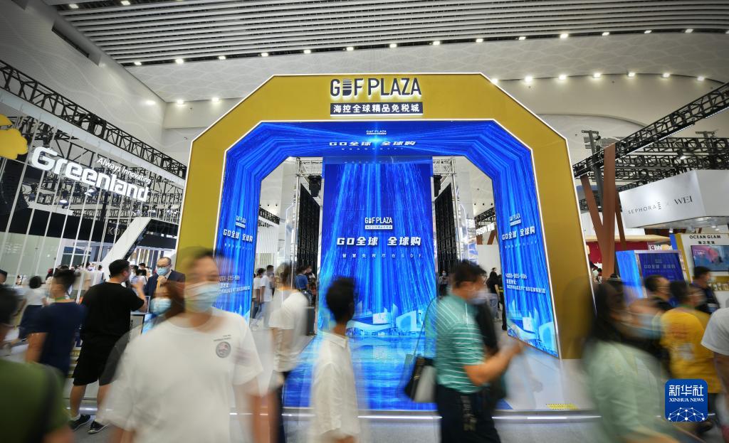 這是消博會(huì)上的海控全球精品免稅城展臺(tái)(5月9日攝)。新華社記者 蒲曉旭 攝