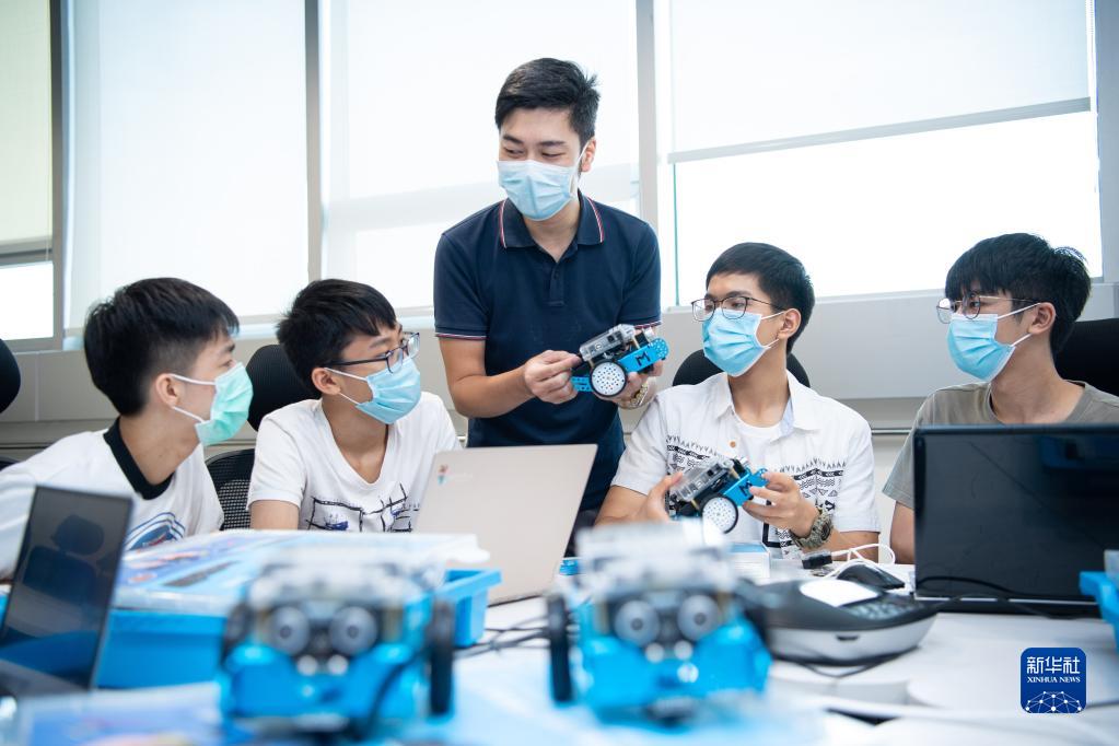 2020年7月14日,創(chuàng)業(yè)者吳以航在澳門青年創(chuàng)業(yè)孵化中心為學(xué)生上培訓(xùn)課?!?0后”吳以航是澳門青年創(chuàng)業(yè)孵化中心會員,2019年,他進(jìn)駐廣州市天河區(qū)港澳青年之家,成立藍(lán)點教育技術(shù)(廣州)有限公司。新華社記者 張金加 攝