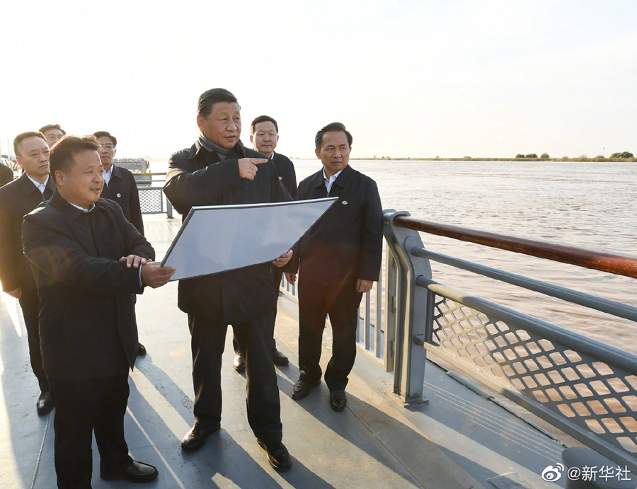 習近平總書記20日在山東省東營市考察黃河入??凇.斕煜挛?,他來到黃河入海口碼頭、黃河三角洲生態(tài)監(jiān)測中心、黃河三角洲國家級自然保護區(qū),實地察看黃河河道水情和黃河三角洲濕地生態(tài)環(huán)境,了解黃河流域生態(tài)保護和高質(zhì)量發(fā)展等情況。(文字記者:張曉松、朱基釵;攝影記者:李學(xué)仁、謝環(huán)馳、王曄)