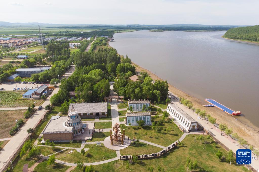 這是6月23日拍攝的黑龍江省雙鴨山市饒河縣四排赫哲族鄉(xiāng)四排村赫哲風(fēng)情園(無人機(jī)照片)。新華社記者 張濤 攝
