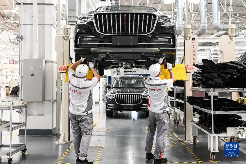 7月1日,工人在位于吉林長春的一汽紅旗工廠總裝車間內(nèi)裝配車輛。新華社記者 顏麟蘊(yùn) 攝