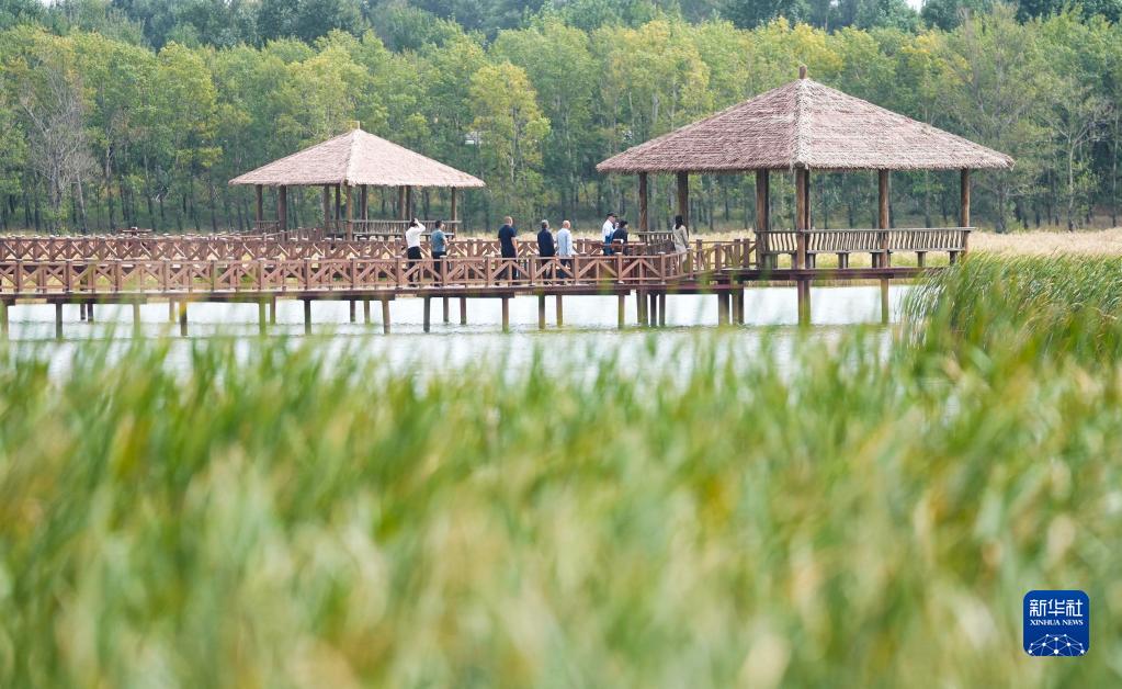 游客在吉林省松原市查干湖野鴨島參觀游覽(9月18日攝)。新華社記者 許暢 攝