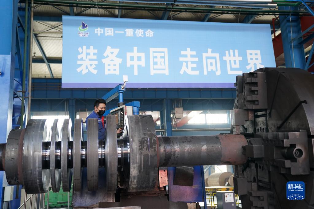 工人在中國一重生產(chǎn)車間作業(yè)(2020年4月10日攝)。新華社記者 王建威 攝