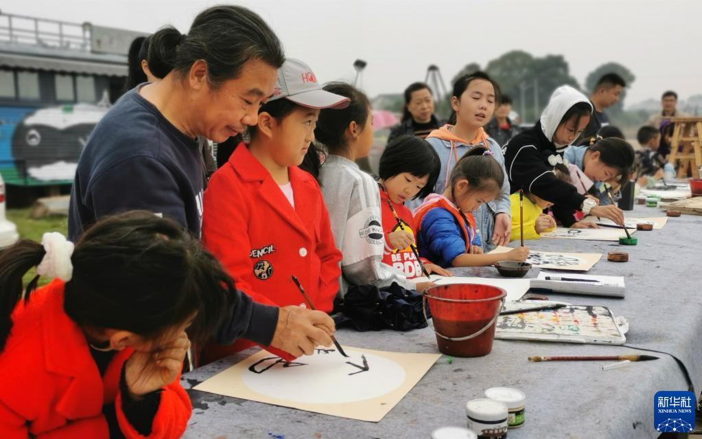 10月31日,許國良(左二)在湖南省益陽市資陽區(qū)張家塞鄉(xiāng)富民村為當?shù)亓羰貎和厦佬g(shù)課。新華社發(fā)(孫國基攝)