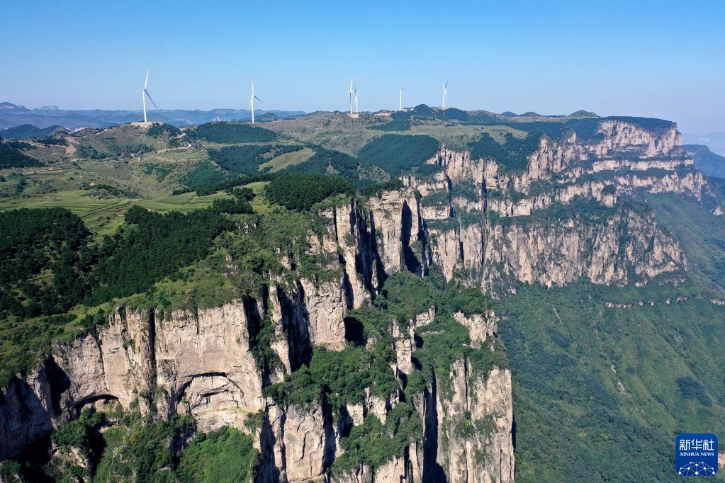 這是2021年9月8日在山西省平順縣玉峽關鎮(zhèn)拍攝的太行山風光(無人機照片)。新華社記者 詹彥 攝