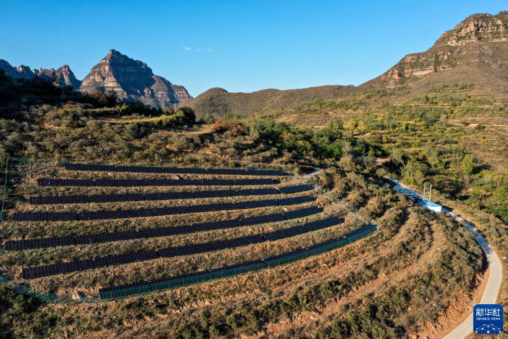 這是2020年10月16日在山西省左權縣拍攝的一處村級光伏電站(無人機照片)。新華社記者 曹陽 攝