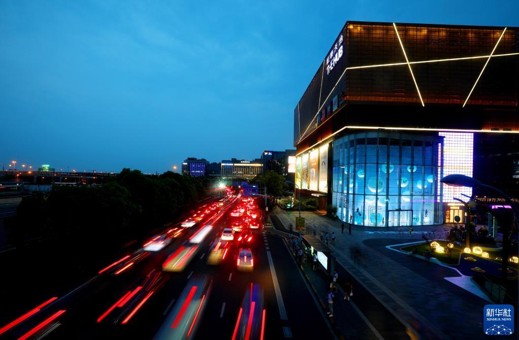 這是從連接虹橋商務(wù)區(qū)和虹橋交通樞紐的人行天橋上俯瞰虹橋商務(wù)區(qū)(2020年9月10日攝)。新華社記者 方喆 攝