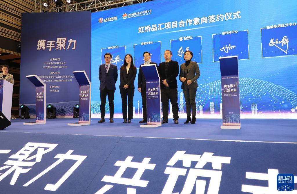 2020年12月30日,虹橋進口商品展示交易中心長三角城市分中心授牌儀式在上海虹橋進口商品展示交易中心舉行,來自長三角城市分中心的代表在儀式上簽署合作意向書。新華社記者 方喆 攝