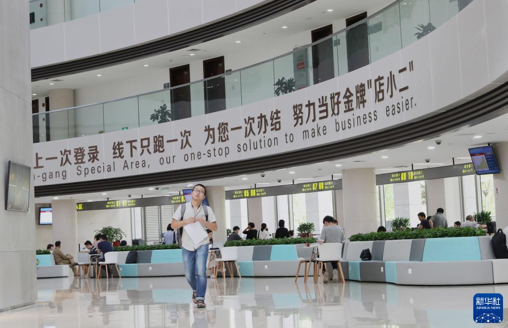 這是上海自貿(mào)區(qū)臨港新片區(qū)行政服務(wù)中心內(nèi)景(2019年8月20日攝)。新華社記者 方喆 攝