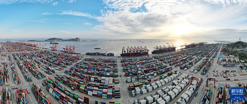上海洋山港,塔吊林立、舟車穿梭。今年上半年,洋山港集裝箱吞吐量達1115.5萬標箱,同比增長20%,創(chuàng)歷史新高。