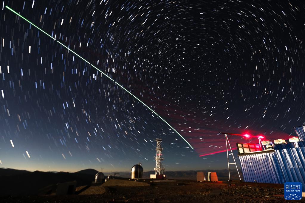 2016年12月9日,“墨子號”量子科學(xué)實驗衛(wèi)星與阿里量子隱形傳態(tài)實驗平臺建立天地鏈路(合成照片)。新華社記者 金立旺 攝