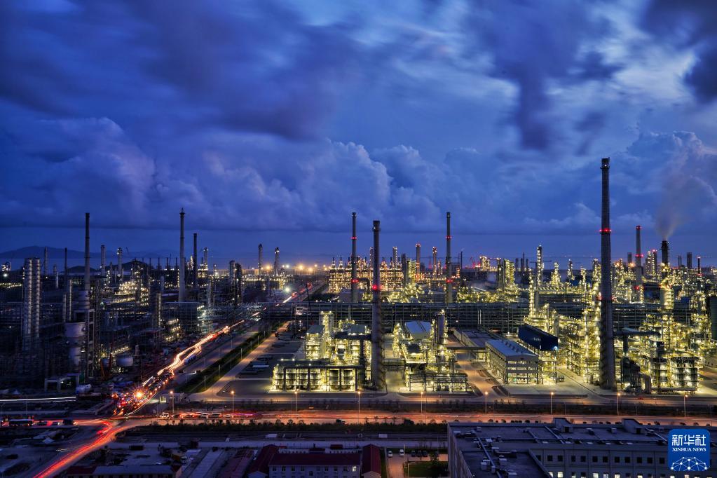 這是夜幕中的浙江舟山魚山島綠色石化基地(2020年9月27日攝)。新華社發(fā)(張帆 攝)