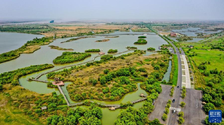 這是5月13日拍攝的山東黃河三角洲國家級自然保護(hù)區(qū)景色(無人機(jī)照片)。新華社記者 郭緒雷 攝