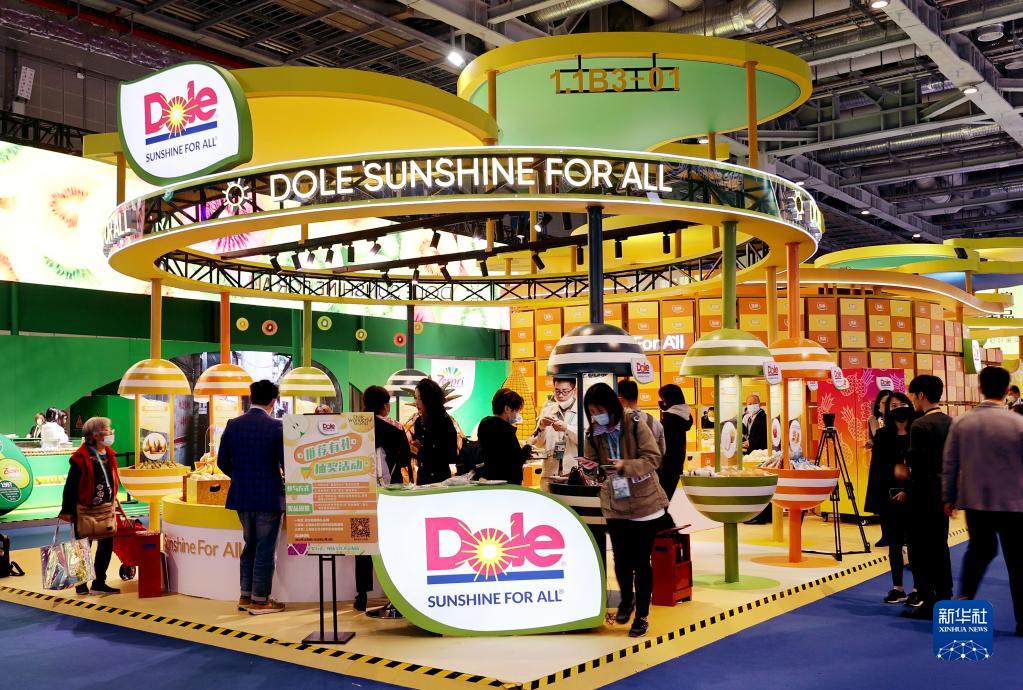11月8日在第四屆進(jìn)博會(huì)食品及農(nóng)產(chǎn)品展區(qū)拍攝的一個(gè)展臺(tái)。新華社記者 王翔 攝