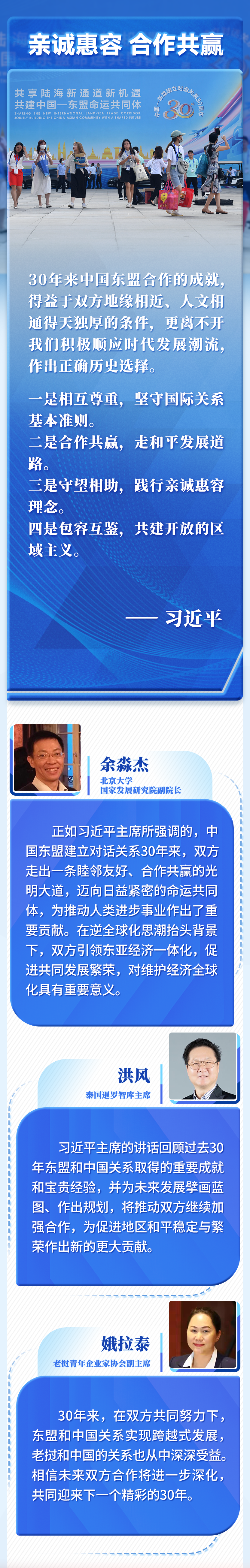 30年來(lái)中國(guó)東盟合作的成就,得益于雙方地緣相近、人文相通得天獨(dú)厚的條件,更離不開(kāi)我們積極順應(yīng)時(shí)代發(fā)展潮流,作出正確歷史選擇。