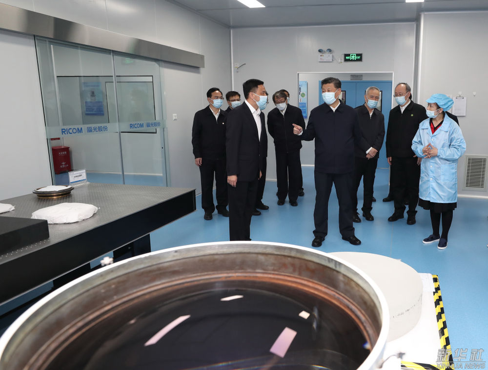 ↑2021年3月24日下午,習(xí)近平在福州福建福光股份有限公司考察。