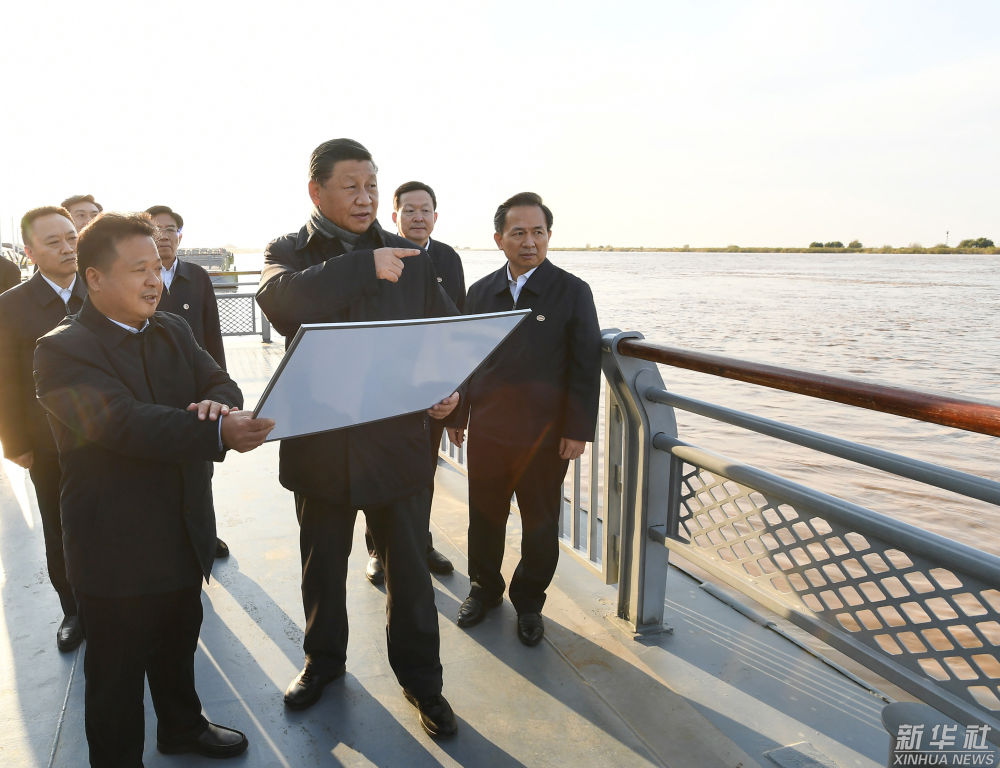 ↑2021年10月22日下午,習(xí)近平在山東省濟(jì)南市主持召開(kāi)深入推動(dòng)黃河流域生態(tài)保護(hù)和高質(zhì)量發(fā)展座談會(huì)并發(fā)表重要講話(huà)。這是座談會(huì)前,習(xí)近平20日下午在東營(yíng)市黃河入海口考察。