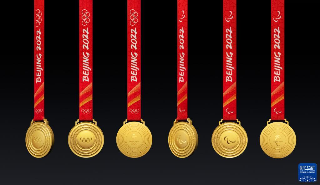 這是北京冬奧會(左)與冬殘奧會金牌。2021年10月26日,2022年北京冬奧會和冬殘奧會獎牌在北京發(fā)布。新華社發(fā)(北京冬奧組委供圖)