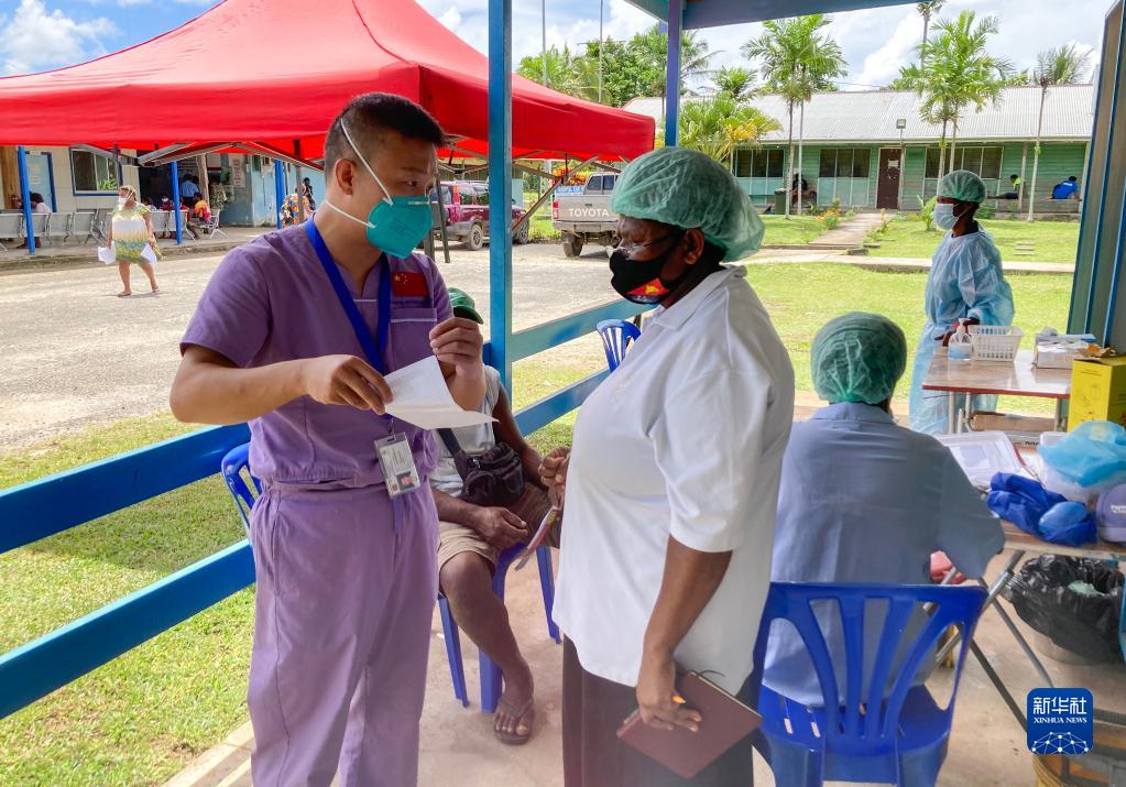 2021年8月25日,在巴布亞新幾內亞新愛爾蘭省卡維恩總醫(yī)院,中國援巴新醫(yī)療隊隊員向當地醫(yī)護人員介紹疫苗接種注意事項。新華社發(fā)(中國援巴新醫(yī)療隊供圖) 2021年9月6日,位于埃及吉薩的埃及生物制品與疫苗公司使用中國科興疫苗原液生產新冠疫苗。埃及是非洲大陸第一個同中國合作生產新冠疫苗的國家。新華社發(fā)(艾哈邁德·戈馬 攝)