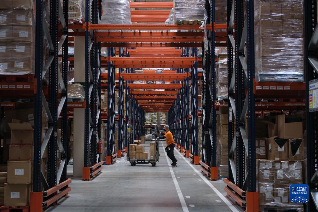 2021年11月11日,工作人員在西班牙瓜達拉哈拉市的菜鳥網絡所設立的海外倉中工作。新華社記者 孟鼎博 攝