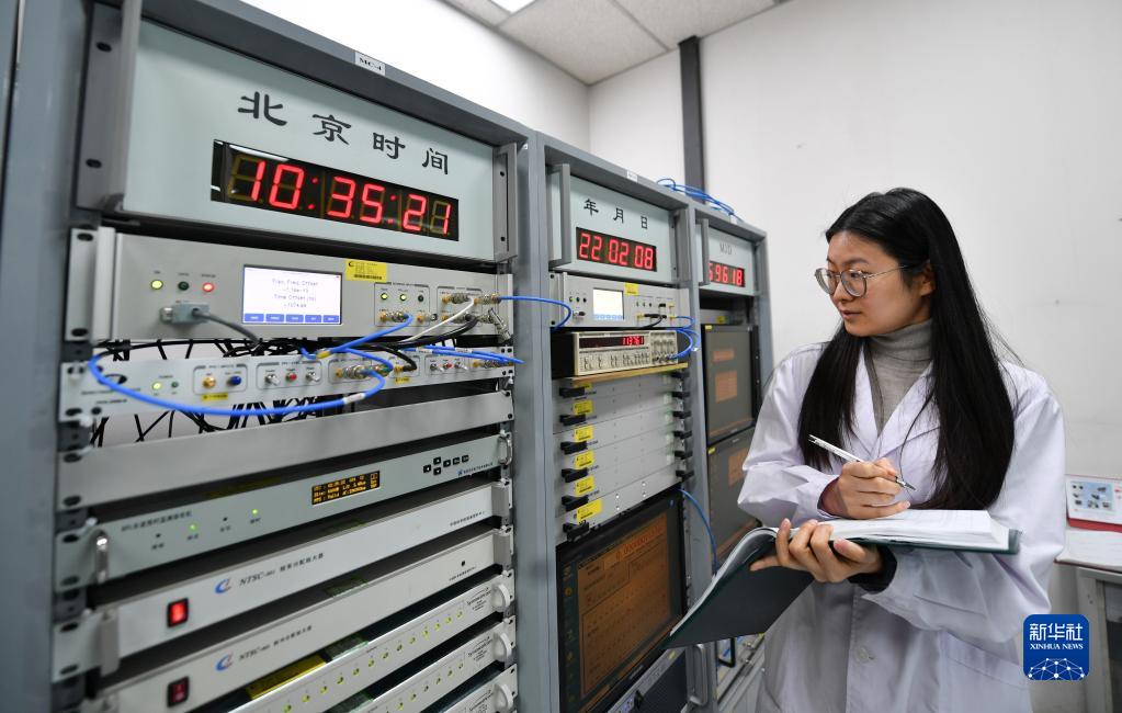 2月8日,科研人員在中國科學(xué)院國家授時中心時間頻率基準實驗室記錄數(shù)據(jù)。新華社記者 張博文 攝