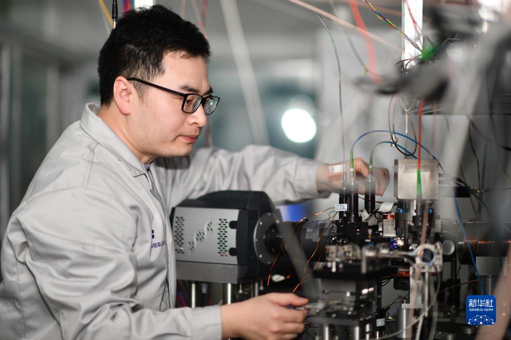 2月8日,科研人員在中國科學(xué)院國家授時中心空間鍶原子光鐘實驗室工作。新華社記者 張博文 攝