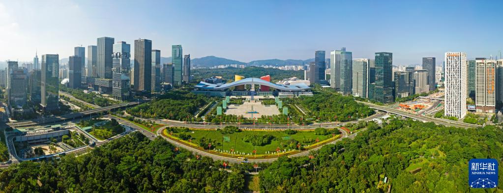 這是深圳市民中心和蓮花山公園一線(2020年10月2日攝,無(wú)人機(jī)照片)。新華社記者 梁旭 攝