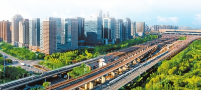 高鐵列車從鄭州東站附近縱橫交錯的高鐵線路中穿過。本報資料圖片