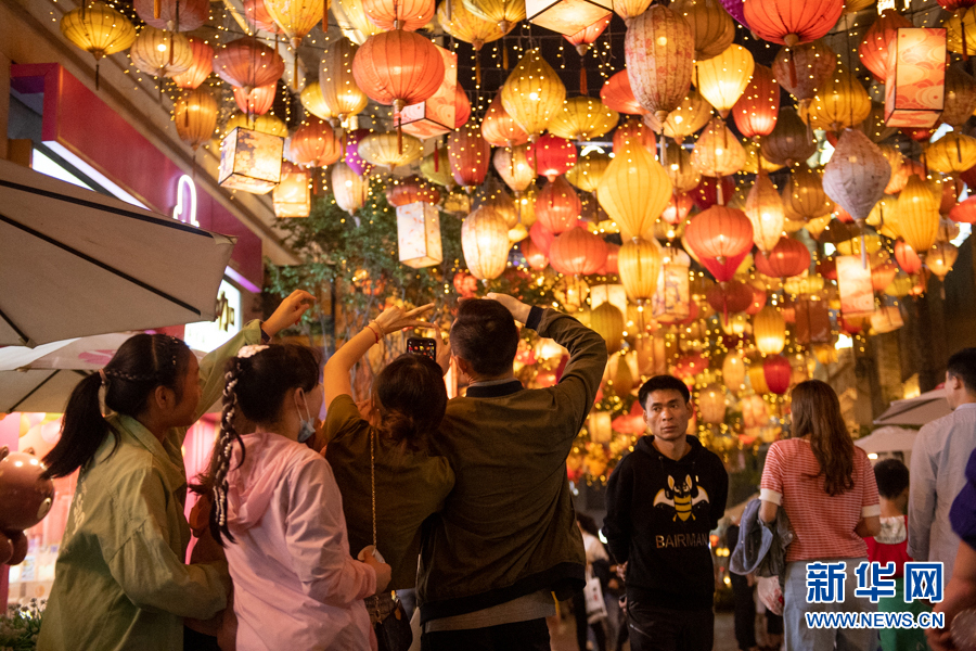 位于重慶市南岸區(qū)的彈子石老街利用燈飾豐富夜間消費體驗。(2021年6月28日攝)新華網(wǎng) 耿駿宇 攝