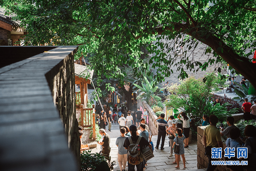 重慶“十八梯”傳統(tǒng)風貌區(qū)內(nèi)游人如織。(2021年9月30日攝)新華網(wǎng) 耿駿宇 攝