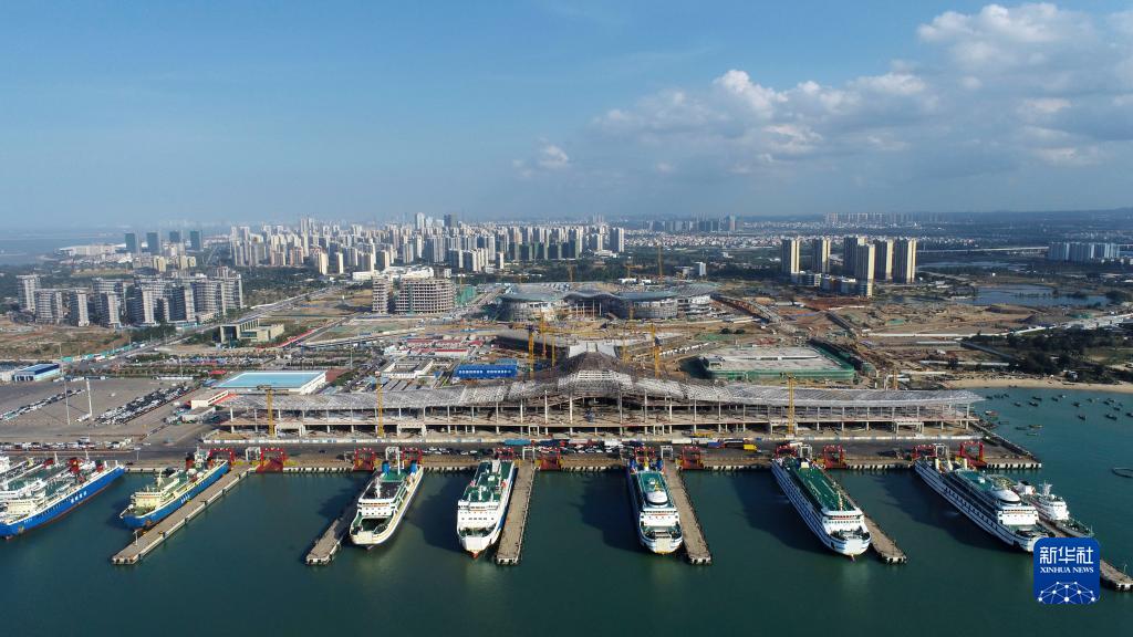 這是2022年2月11日拍攝的海口新海港客運(yùn)綜合樞紐項(xiàng)目施工現(xiàn)場(chǎng)(無(wú)人機(jī)照片)。新華社發(fā)(黎多江 攝)