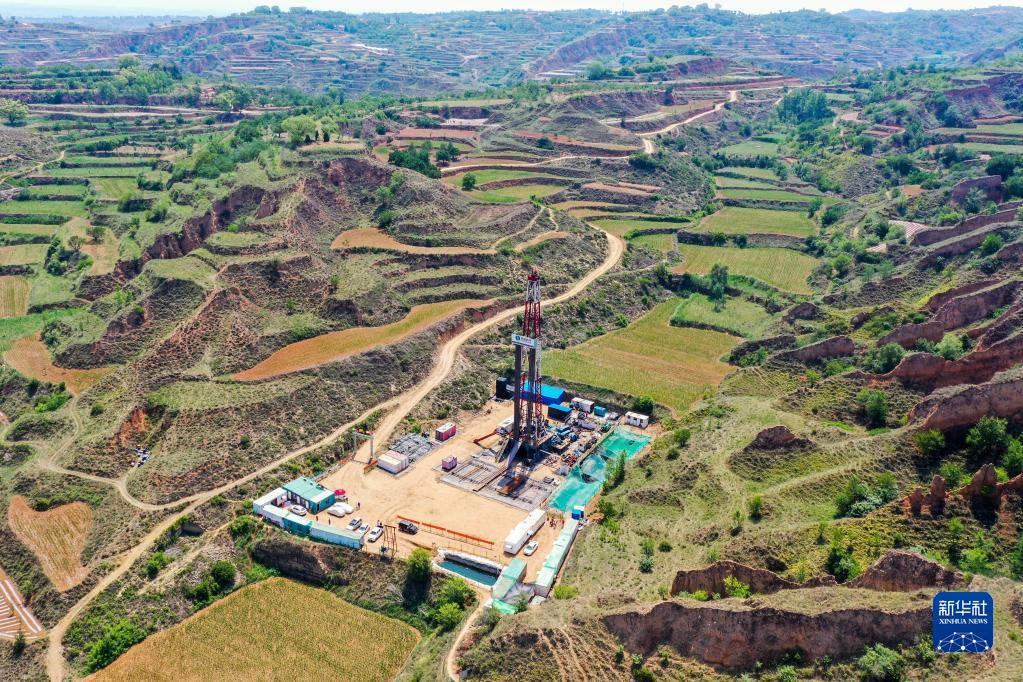 這是華新燃氣山西藍焰煤層氣集團有限責(zé)任公司位于山西省長治市武鄉(xiāng)縣的一處鉆井現(xiàn)場(2021年6月22日攝,無人機照片)。新華社記者 曹陽 攝